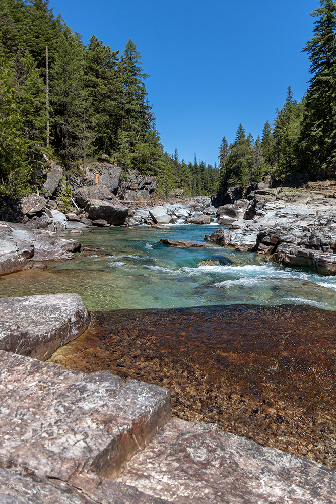 On our way back down Going to the Sun Road, we continued our mission to stop at scenic pull-offs, my favorite of which was a spot along McDonald Creek where colorful stones lined the bed of the crystal clear river.