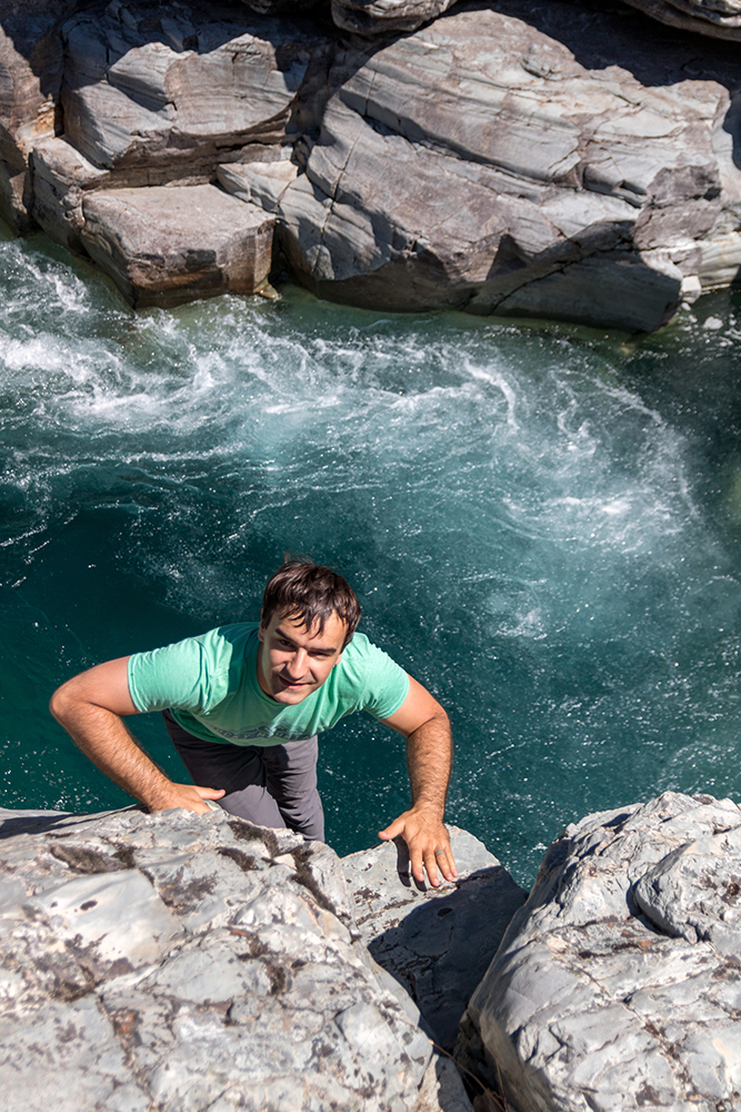 After a rather unremarkable downhill slog, we finally heard water running nearby and soon we saw the unreal, turquoise water of Reynolds Creek.