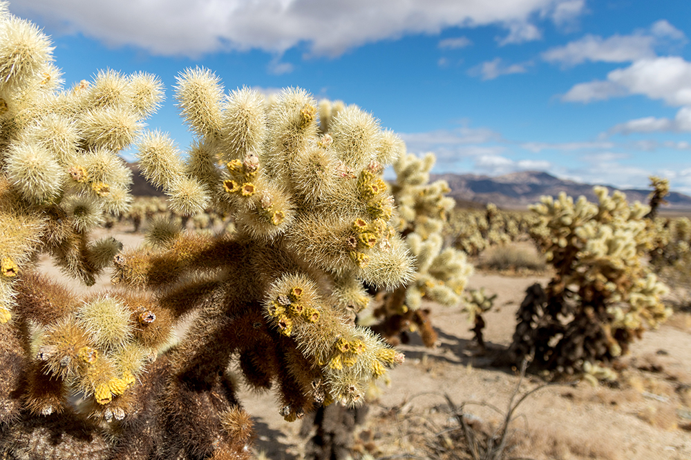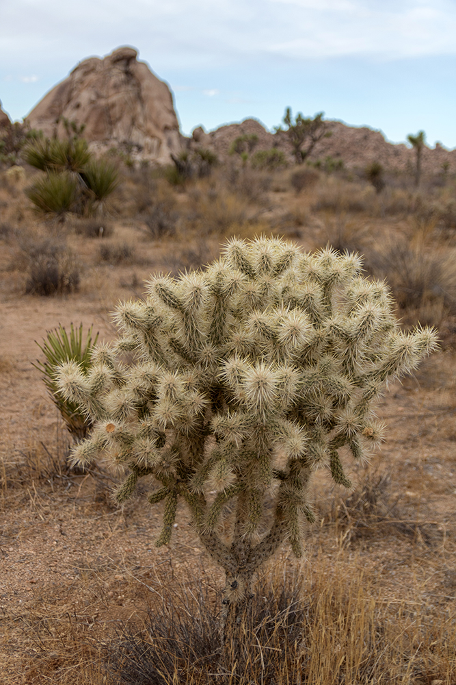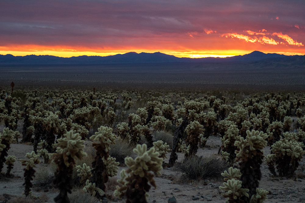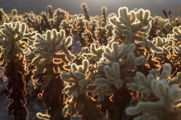 By the time we made it back to the parking lot, I was getting hungry for dinner. The sun was dipping lower in the sky and I knew that our time in Joshua Tree was coming to an end. As we drove past the Cholla Garden one last time, I noticed that the cacti were glowing in the late afternoon light, so we made a third and final stop so I could take some pictures.