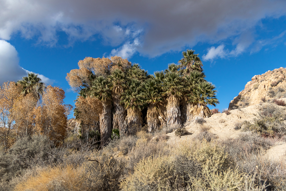 Our reason for going all the way to Cottonwood (which was on the complete opposite end of the park) was to see a palm oasis that Amy had recommended. We would be foregoing the seven mile hike all the way out to the Lost Palm Oasis since we didn’t have enough daylight left to accomplish it, but lucky for us, the Cottonwood Spring was visible from the trailhead.