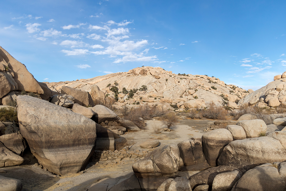 The 1.3 Barker Dam loop is one of the most popular trails in Joshua. It was easy hiking which made for good conversation, and the landscape was flat, but full of interesting things to investigate if you are a plant lover. Desert plants are amongst my favorites so I kept falling behind as I examined juniper bushes and various types of yuccas and cacti. I was blown away by how much life there was in such a dry place.