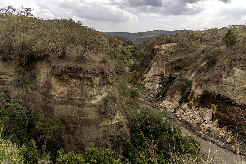 The short drive landed us at a trailhead to hike down into Ol Njorowa, the Lower Gorge. Fred set us up with another guide to take us into the canyon, and he led us on a fun, downhill hike. Once we reached the canyon floor we hiked along a riverbed, hopping back and forth across a small creek as we walked until we reached a cool viewpoint where the gorge’s walls towered above us on either side. This area is rumored to have been used as inspiration for The Lion King, but I can’t seem to find any legitimate confirmation of that. I will say, the gorge in the wildebeest scene in the “live action” Lion King does look incredibly similar to this spot.