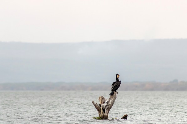 We watched the birds until they were nearly out of sight, and then Fred drove us the couple of kilometers to Lake Naivasha where he set us up with a boat tour. This was what Jared was most excited for because hippos are amongst his favorite animals, and the tour did not disappoint in this department. When we first started off, there was plenty to see in the form of beautiful scenery. The lake was like glass, a far cry from matching its name which is derived from the Maasai word “Nai’posha” which means “Rough Water.” The water was surrounded by gentle hills and lined with acacia trees. Many of the trees had been overtaken by the lake and turned to ghostly skeletons where cormorants perched.