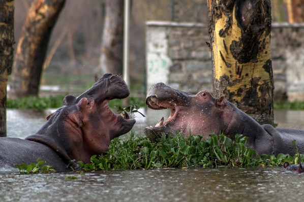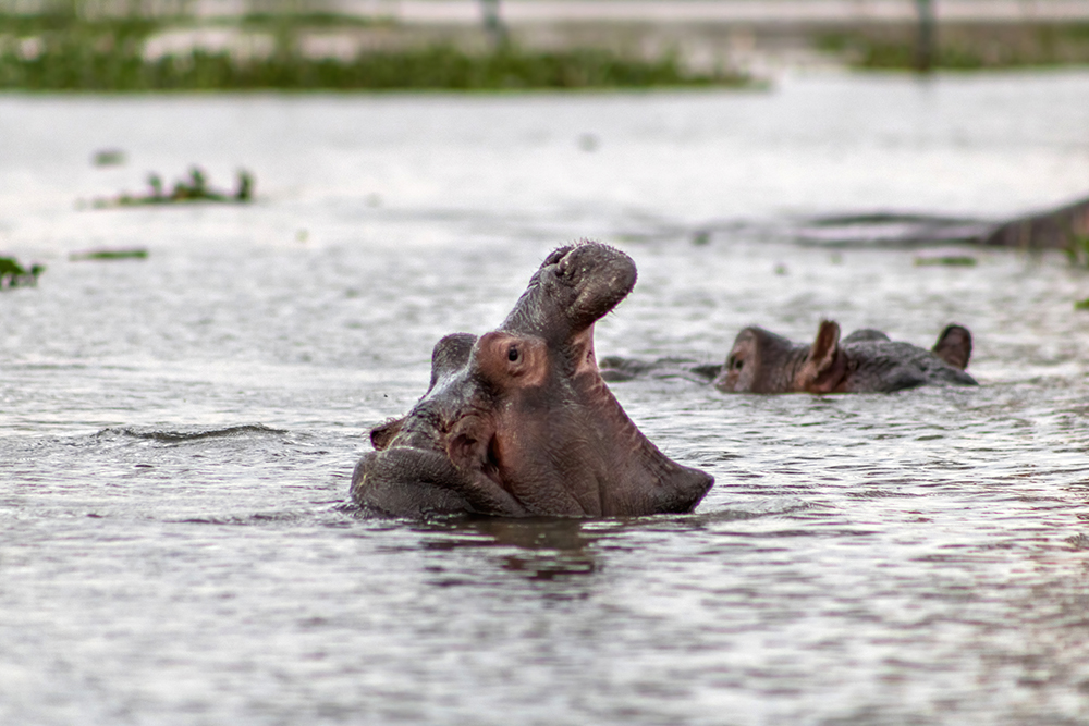 In almost no time, we found a large raft of hippos, and even got to witness a brief but dramatic moment in which two of them challenged each other over a patch of water plants.