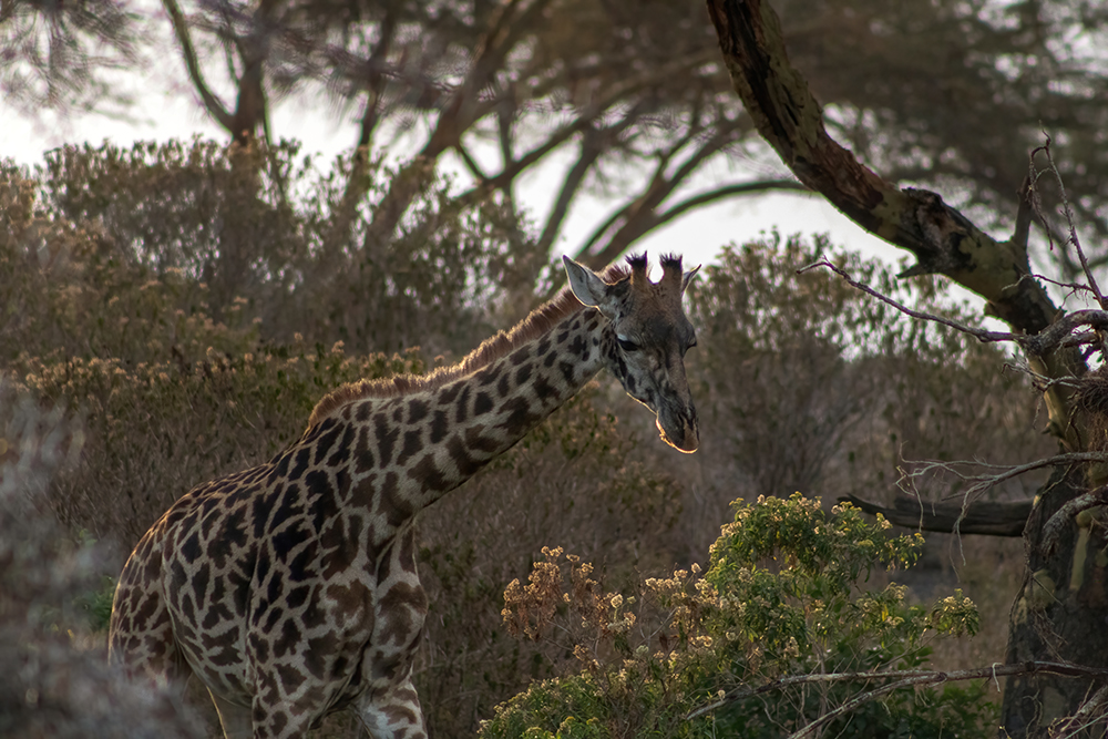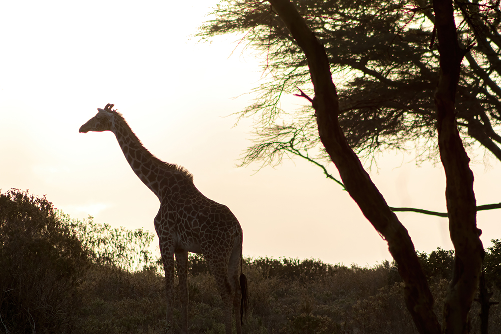 We made on last stop to scan the shoreline of a peninsula called Crescent Island. The shore looked more wild and untamed than the other side of the lake, and just as the sun neared the horizon, we spotted more giraffes. We watched them stride along through the trees until they were no longer in sight, and then it was time to return to shore where Fred was waiting for us.