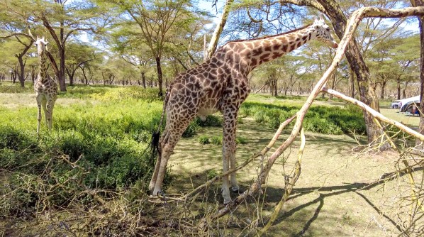 But the most exciting moment for me was when we rode within feet of two lumbering giraffes who were eating the bark of an acacia tree.