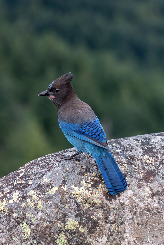 A few minutes later my patience was rewarded and the Stellar’s Jay landed nearby again, just long enough for me to get exactly one good picture.