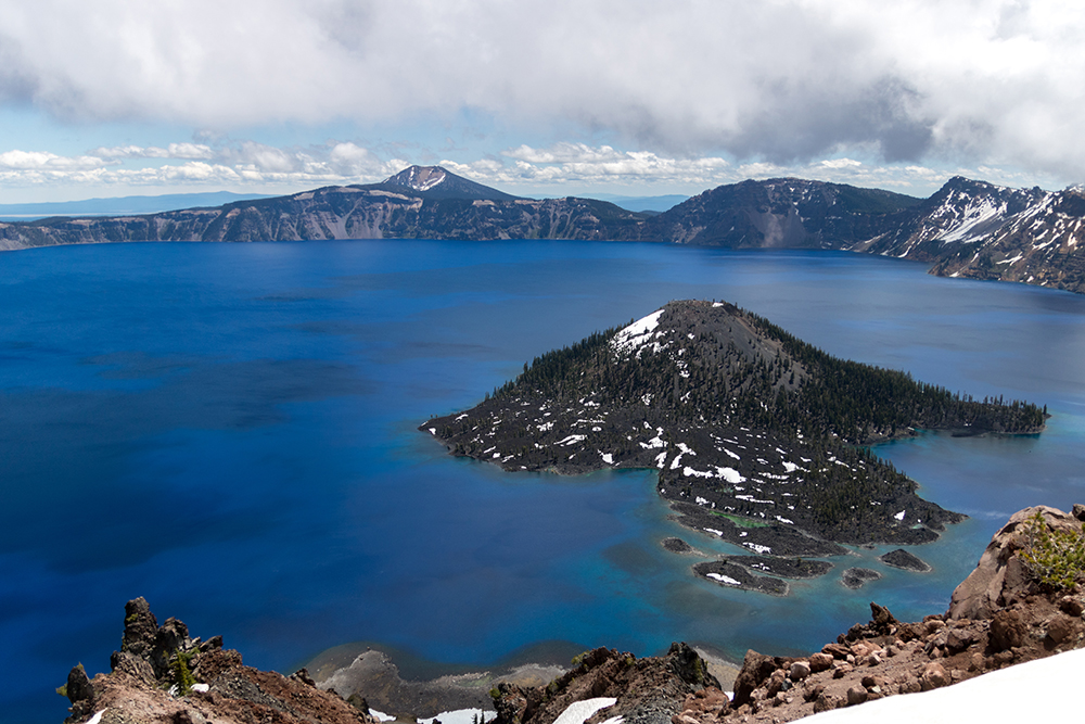 The sight of it fills one with more conflicting emotions than any other scene with which I am familiar. It is at once weird, fascinating, enchanting, repellent, of exquisite beauty and at times terrifying in its austere-dignity and oppressing stillness. In the sparkling sunlight, its iridescent hues are dazzling and bewildering. When a storm is on, it throws terror into the heart of the observer and carries the mind back through the eons when it was born in Titan throes of nature. There are a few other crater lakes in the world…. but there is none known to man that can remotely approximate the transcendent beauty of Crater Lake in Crater Lake National Park.