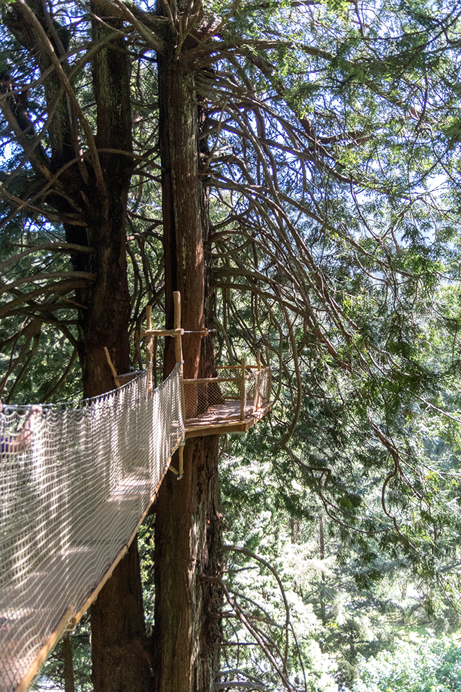 We climbed a spiral staircase up to the first platform, and then took the bouncy bridges through the canopy, this time looking down as much as we were up.