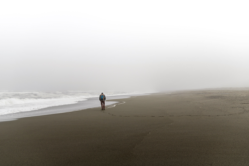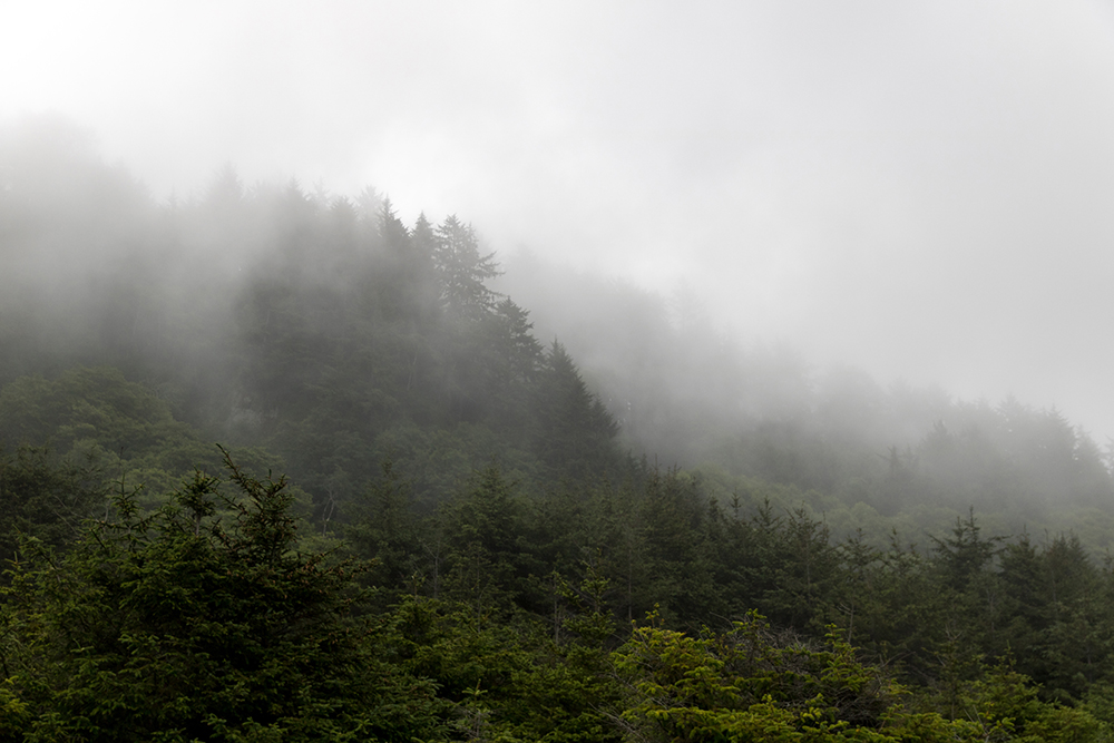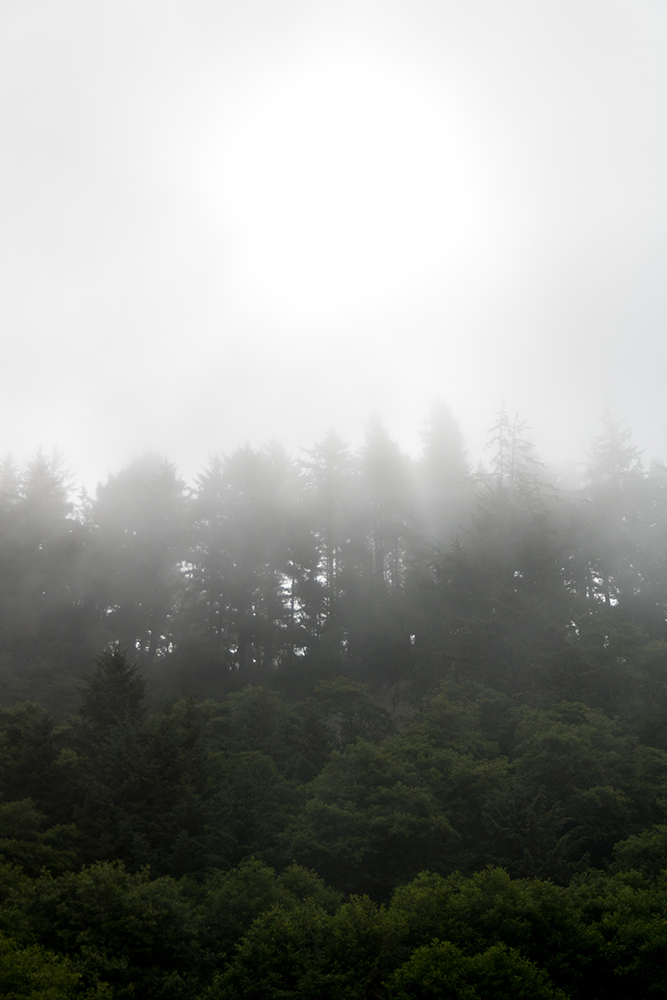 Nearby Gold Bluffs Beach was completely deserted though, so we walked out onto the sand. It wasn’t your stereotypical good beach weather. A low-hanging fog was engulfing the coast, the white sky nearly blending in with the foamy waves that pummeled the shore. Despite the loud roar of the waves, the beach felt eerily quiet. There was an almost ethereal sensation of everything being muffled and blurry. I suddenly felt quite lonely even though I was only feet away from the others.