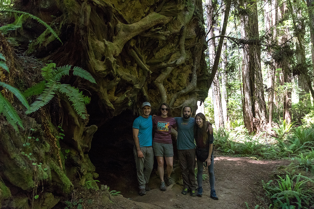 Once the herd was nearly out of sight, we finally got back on the road, and Vince and I took Jordi and Anthea back to see Big Tree, and then to hike the Prairie Creek Trail again. This time we turned around after we all ran through the tunnel log, and returned via the same path.