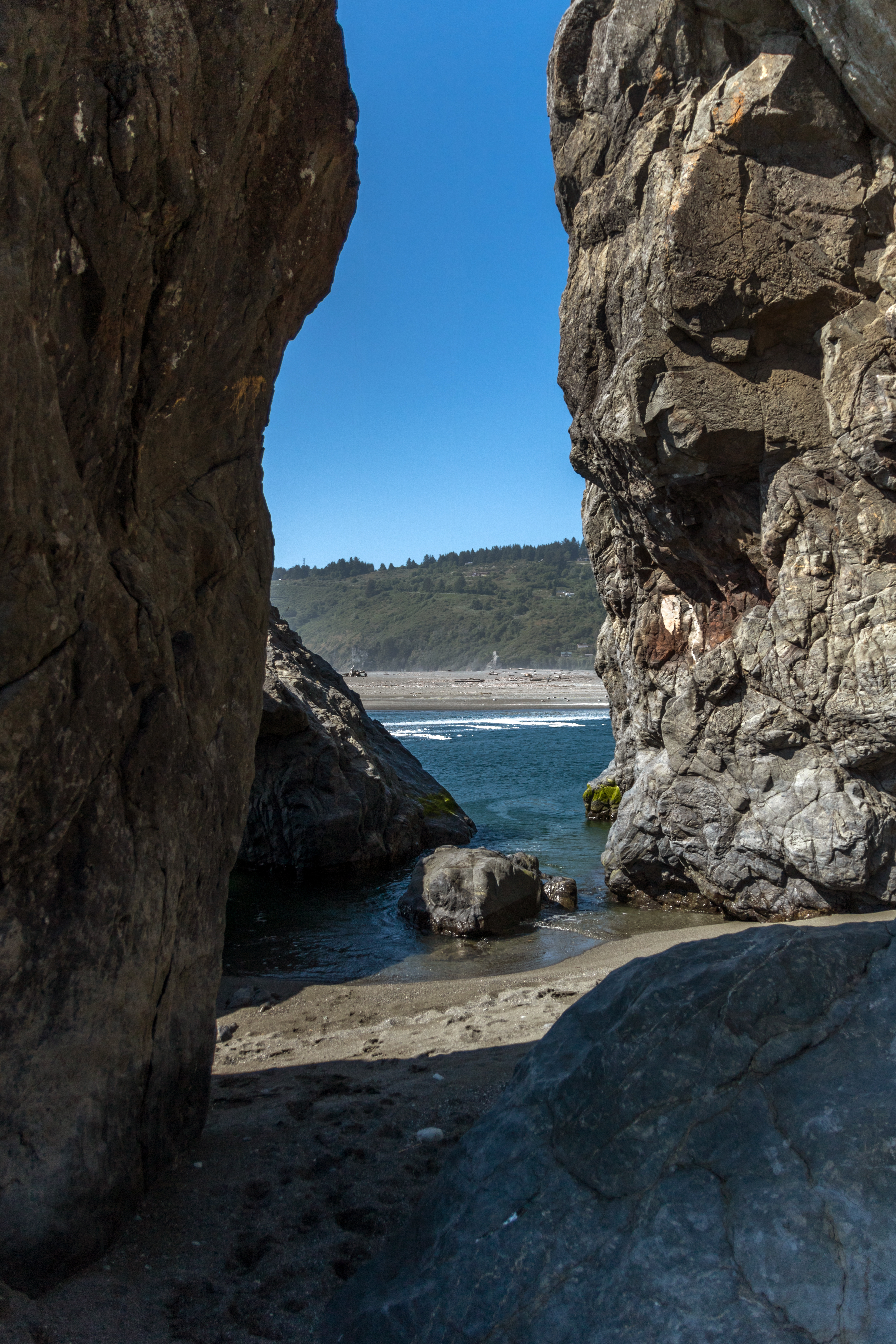 After a quick dinner, we ventured north to Crescent City since it was now one of the time windows when the road was open. With no specific plan, we ended up finding a marina where we scrambled on some seaside cliffs as the sun began to set. At the very last minute we found a bunch of plants that I thought were poison oak, which sent us retreating to the car. The day was coming to a close anyway, so we drove back to our cabin. Jordi and Anthea would be returning home the next morning, and Vince and I would be heading northward back to Portland. Our trip was nearly over, but we still planned to visit a few more sights before getting back on a plane to go home.