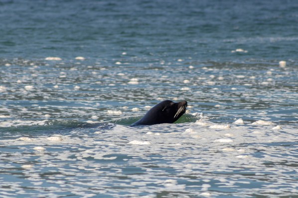 Next we visited the mouth of the Klamath River, where a cold prevailing wind and incoming tide made for harsh conditions. It was worth the discomfort though, because the river was teeming with harbor seals and sea lions, and we spent a lot of time just waiting to see their faces emerge from the murky water as brown pelicans flew overheard.