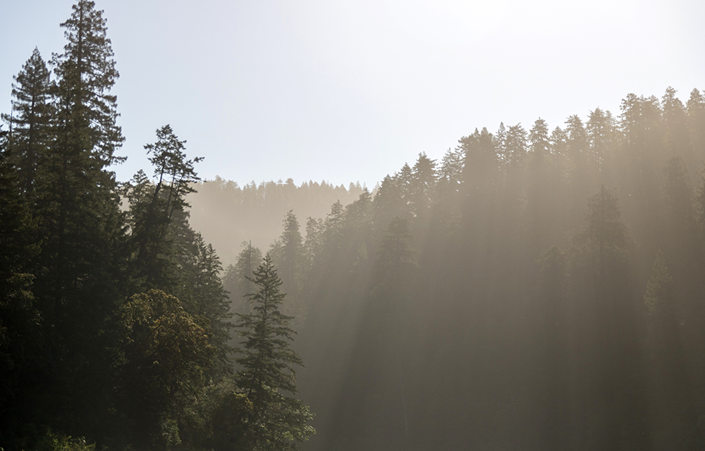 The first of these was the Smith River in Jedediah Smith Redwoods State Park. We parted ways with Jordi and Anthea early in the morning so that we would be sure to make it through the landslide section of the northbound highway before the road closed down for the construction crew to work on it. This was our only chance to see any of Jedediah Smith Redwoods because of the closure, and the forest turned out to be stunningly beautiful. Beams of sunlight pierced through the tall trees, illuminating the winding road through the park. Driving through the sunbursts filled me with a child-like excitement.