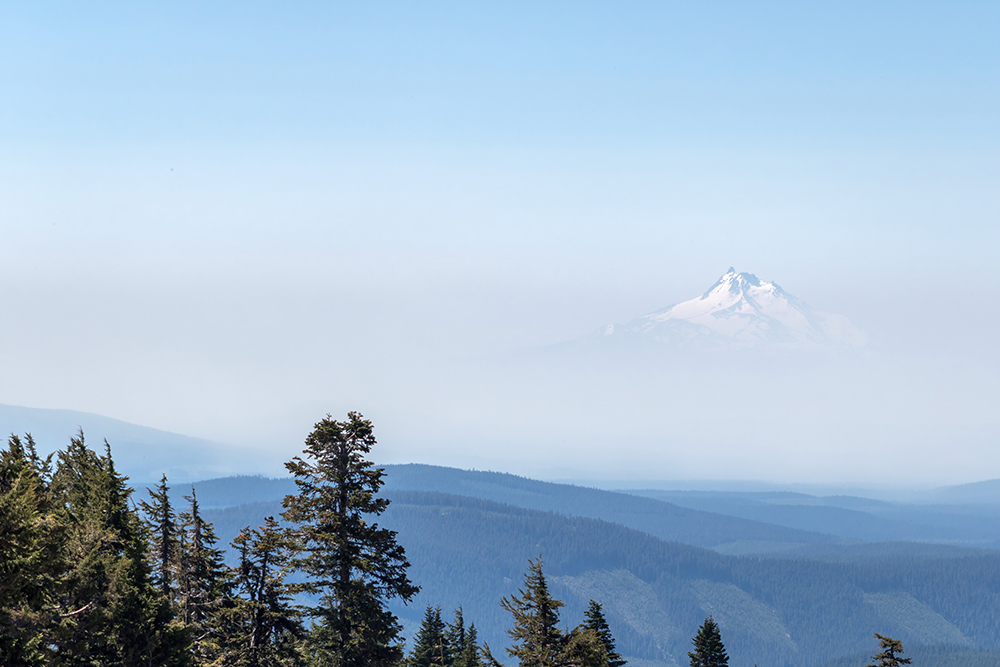After our short hike, we still had a bit of time to kill, so we drove up to the Timberline Lodge, a local ski area, where we got an even better look at Mount hood, and a lovely view of Mount Jefferson peaking out from a hazy sky.