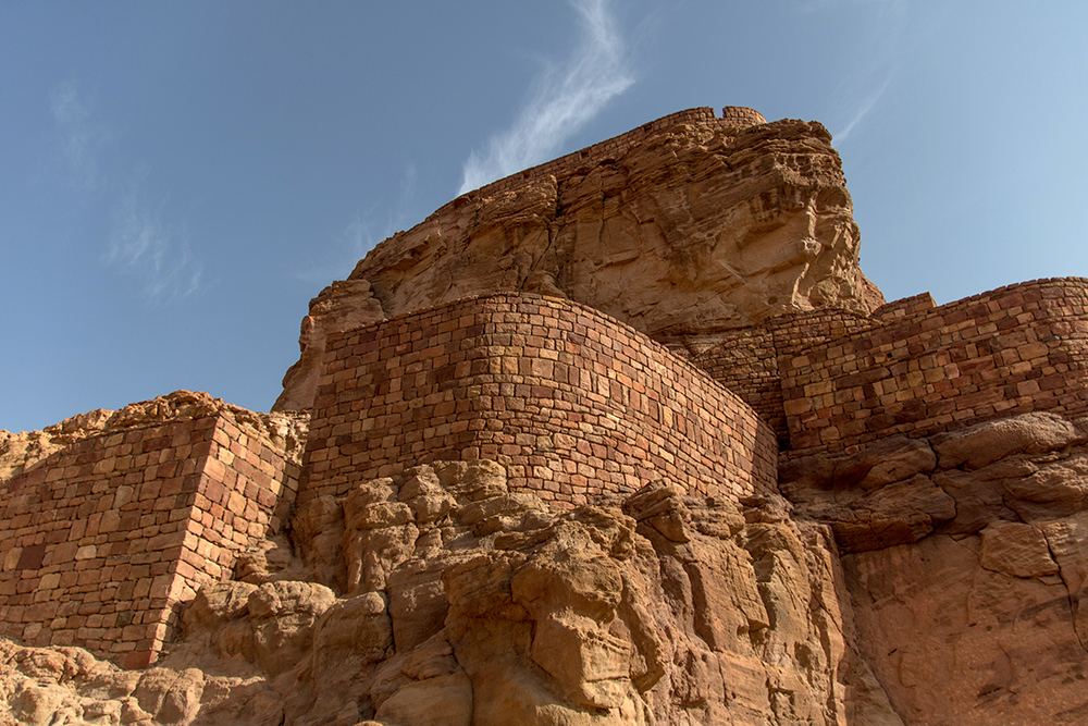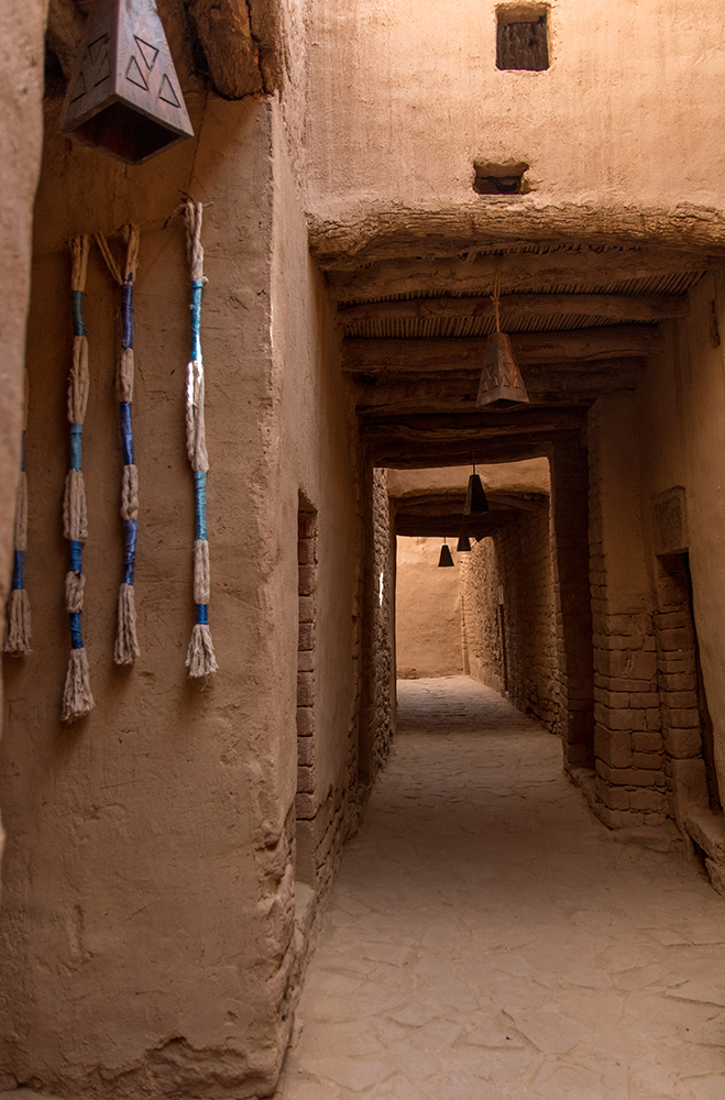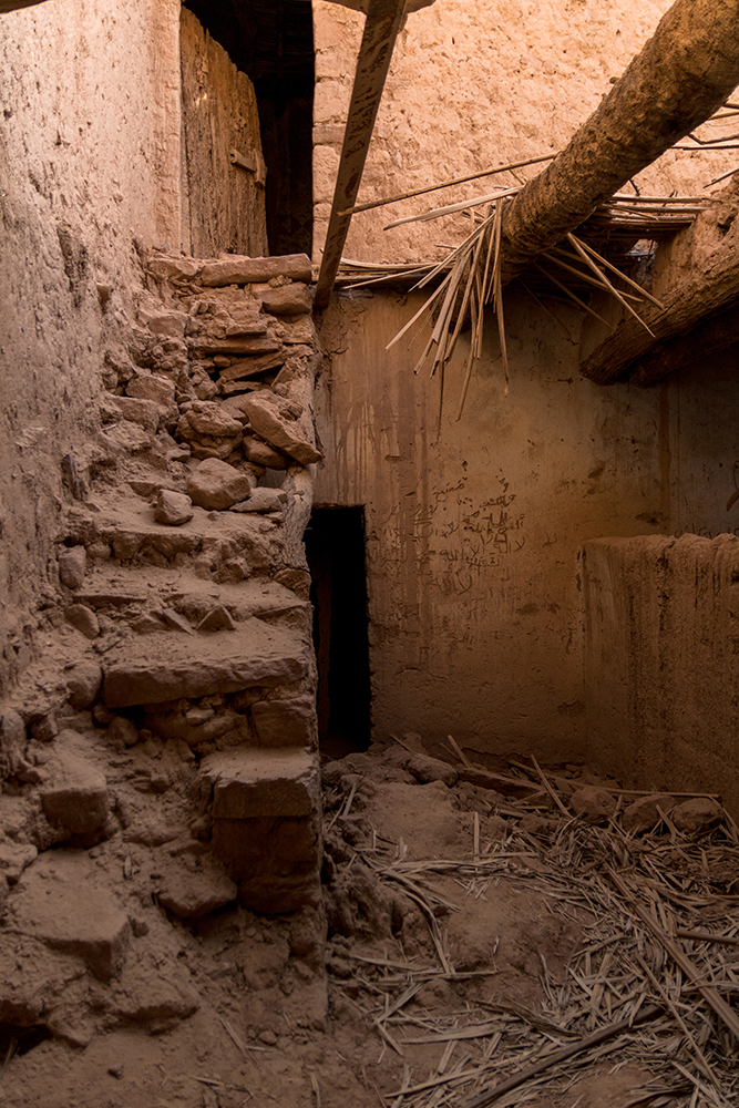 We grew ever closer to the center of the old city as we wound our way through narrow passages, peering into homes along the way. The guide pointed out several inscriptions in the mud walls, and when we came into an open-roofed courtyard, he showed us a tall spire that inhabitants of the city had used as a sundial. But this paled in comparison to our next destination, the Musa bin Nusayr Castle.