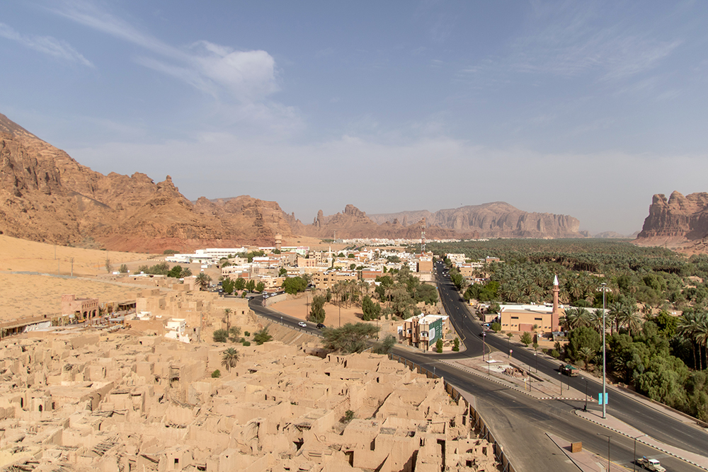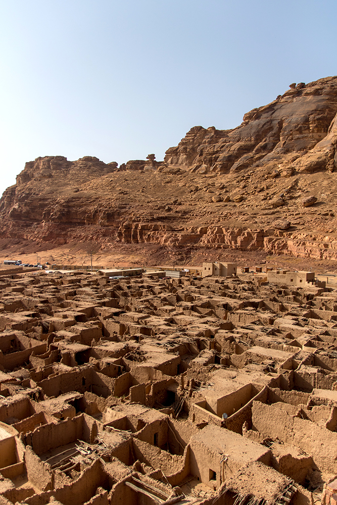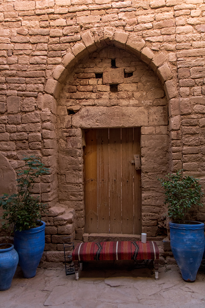 On our way back down the stone staircase, we asked our guide if it was possible to visit any of the date palm forests we’d been seeing throughout Al-‘Ula. He didn’t seem to know of anything official, but he said we could wander into the forest wherever we wanted, because the date farmers don’t mind. Then he showed us a few more points of interest as he led us on a different path back through the maze of mud brick that eventually returned us to where we’d started near the modern section of town.