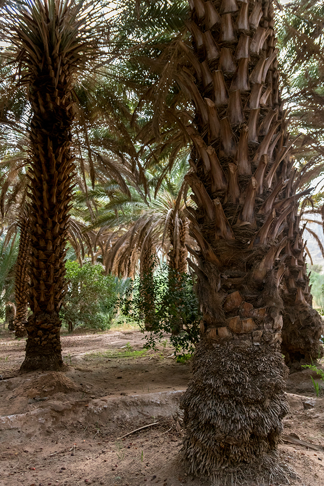The ground was carpeted in a layer of rejected dates, making for a slightly sticky walk, and we also found a mountain of harvested dates piled up on a large tarp. Dates weren’t the only fruit in the area, there were also citrus trees interspersed through the forest. It was shocking to be somewhere so wet and green after spending days in the arid desert.