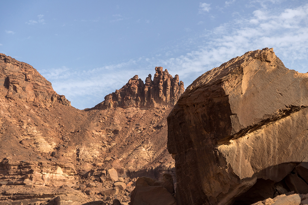To end our stay in Al-‘Ula, the four of us had booked a morning tour through the ruins of Old Town. After a mix-up of the meeting location on our part, we managed to find our guide just in time before the group left without us. The guide was understanding, and quick to offer us refreshments before the tour started on a walk through the maze-like corridors of the old stone city, which was historically an important settlement along the pilgrimage route from Damascus to Makkah.