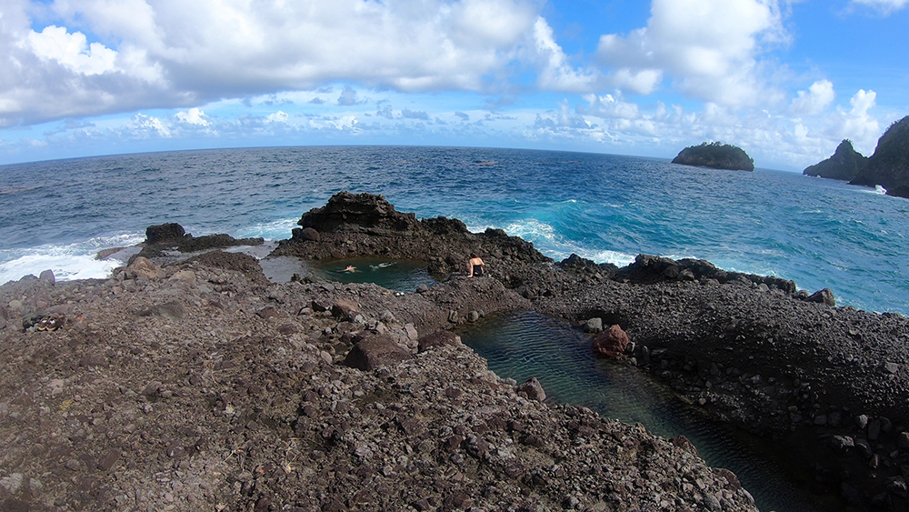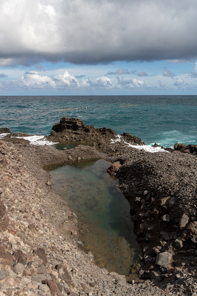 It didn’t take long after that to find the Glasse Pools, which looked exceedingly inviting after a long, sweaty hike. In no time, we had stripped down to our bathing suits, and hopped into the refreshing salt water. Vince and Bonnie had brought snorkel masks, so we took turns looking at little patterned crabs scuttling across the sharp rocks at the bottom of the pool. I couldn’t believe that we hadn’t seen anyone else around for the entirety of our hike; we had the pools completely to ourselves.