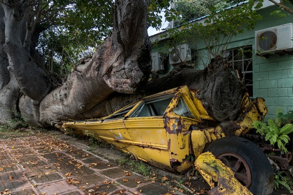 Next up was a stop at the nearby botanical gardens, which seemed almost redundant in light of the diverse jungle that surrounded the city. The gardens had a variety of interesting trees that aren’t native to Dominica, an enclosure with some of Dominica’s two species of extremely rare parrots, and a dilapidated school bus that was crushed under the weight of a huge baobab tree. The tree fell onto the bus during Hurricane David in 1979, and remains untouched to this day.