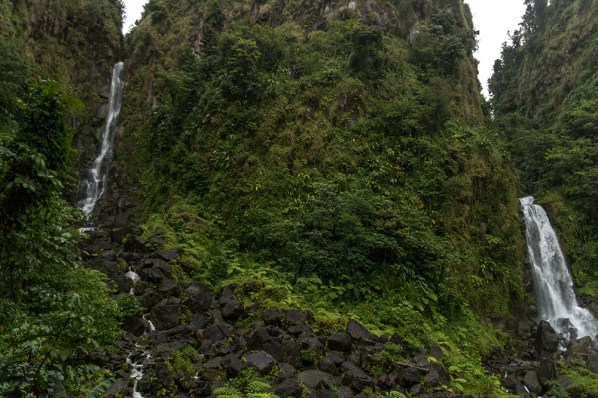 That was about enough city exploration for us for one day. It’s hard to stay in town for too long when so much pristine nature is out there waiting for you, so we retreated up into the mountains of Morne Trois Pitons National Park to visit a place we’d been hearing about since we arrived: Trafalgar Falls.