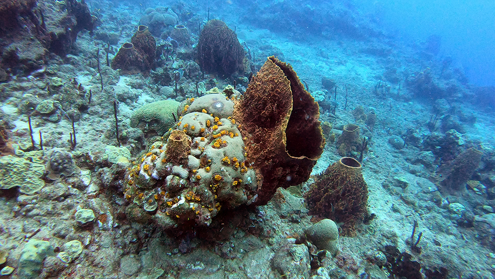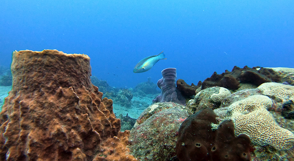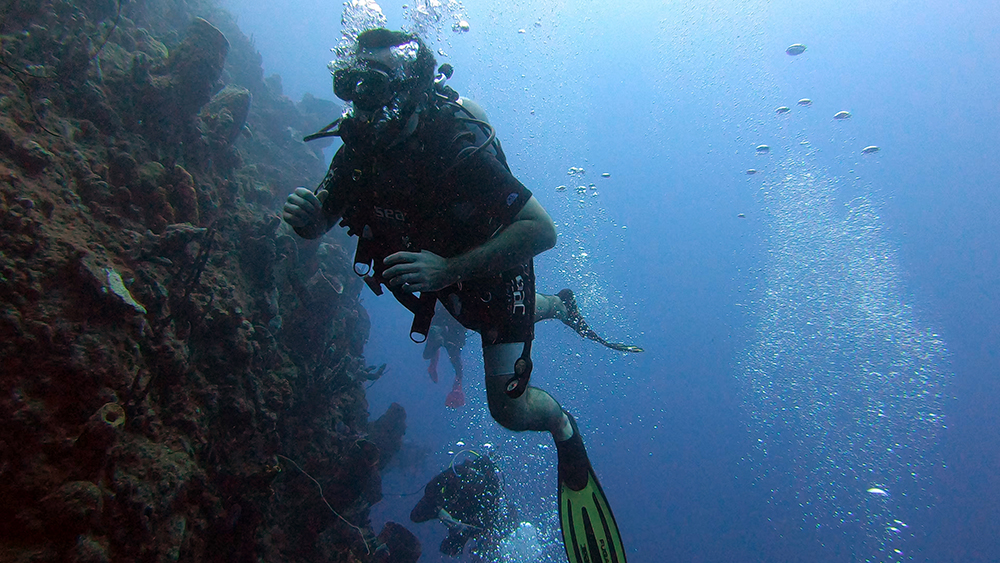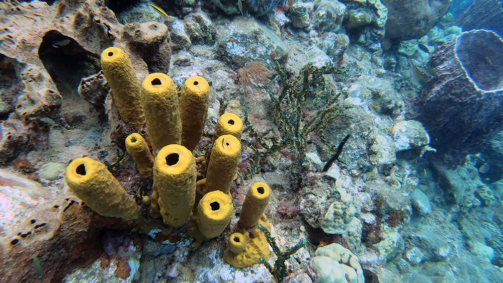 We had a decently long dive despite hanging out at a depth of sixty feet for much of it (your body consumes air faster the deeper you are), and we got to keep exploring a shallower section of the reef that was covered in yellow tube sponges during our five meter safety stop.