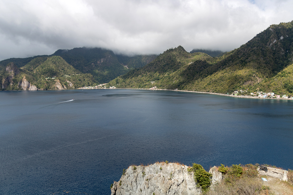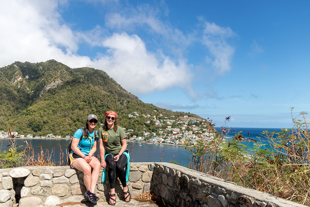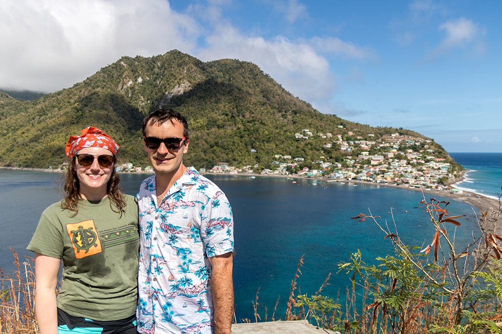 Back at the beach, we wolfed down the roti, and then ordered some rum from Mr. Bubbles. It rained for a bit, which made the warm spa even more enjoyable, but once it cleared up we decided we’d better get moving and take advantage of the good weather to fit in some sightseeing. This led us to drive up to the top of Scott’s Head, where we got to enjoy one of the downright prettiest views of the whole trip.