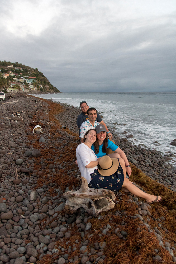 The sand at Bubble Beach was so hot that we had to hurry into the water or risk burning our feet, but the water itself was perfect, and of course, bubbly. I struck up a conversation with a local man who told me a lot of interesting stories about some of the other volcanic features of the island, and eventually offered to show us where to find Jennifer who makes roti. Vince, Bonnie and I followed him uphill through a cemetery and then into town, and he told us all of the good places to get food and ice cream along the way. Jennifer ended up having exactly enough roti left for the five of us, so we bought them all and she bagged them up for us to carry back to Rachel and Jared at the beach.