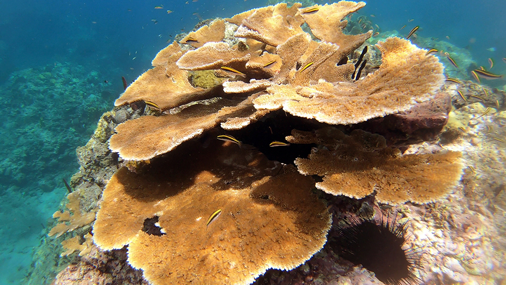 Kerry led us out to the reef, stopping to point out endless interesting finds along the way. He noted a scorpionfish, identified different kinds of coral, talked about the efforts that locals are taking to combat coral bleaching, and found a tiny lettuce slug, which I never would have spotted. Every time he slowed down, I knew that more amazing fish facts were coming my way, and I wished I had a waterproof notebook with me so I could write down everything he said. He even showed us a distant pair of hills that had been used as a filming location in Pirates of the Caribbean II – I rewatched the movie once we were back home, and recognized the spot immediately.