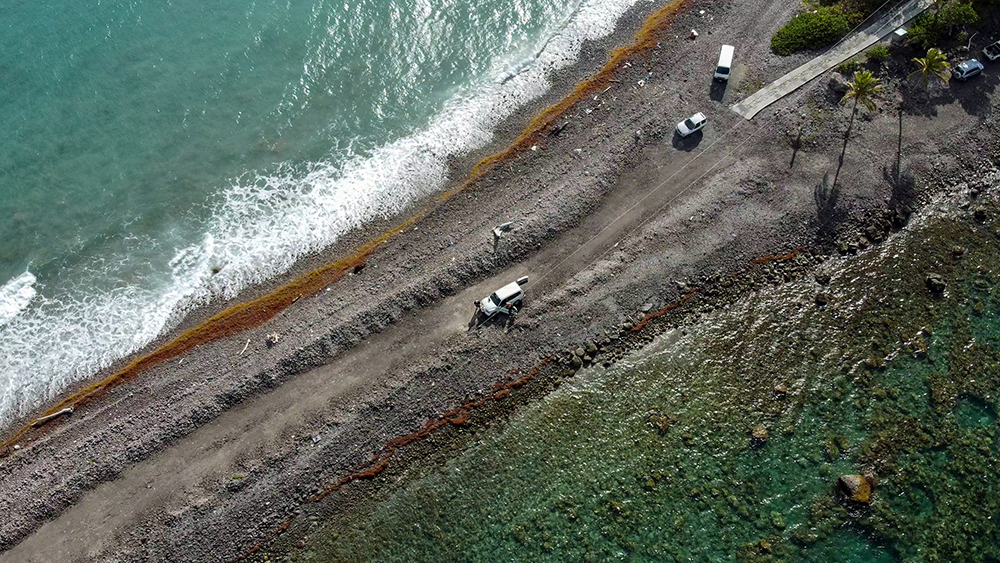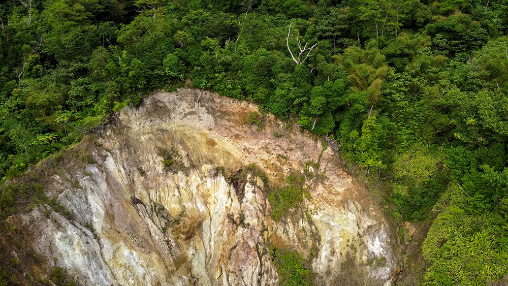 Sure enough, the place was deserted, but we got out of the car and walked down the road a little ways to see if we could come across anything that looked like a trail. We had no luck, but a power worker drove up and stopped to tell us that the park had never reopened after Hurricane Maria, but it was possible to bushwhack up to the sulphur springs. He recommended hiring a guide since the jungle is dense and difficult to navigate, but we decided to send Jared’s drone up to get a look at the springs since we clearly didn’t have enough time left in the day to tackle a hike like that.