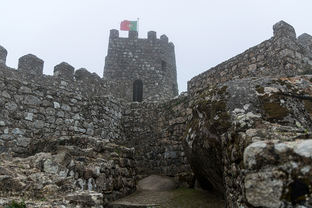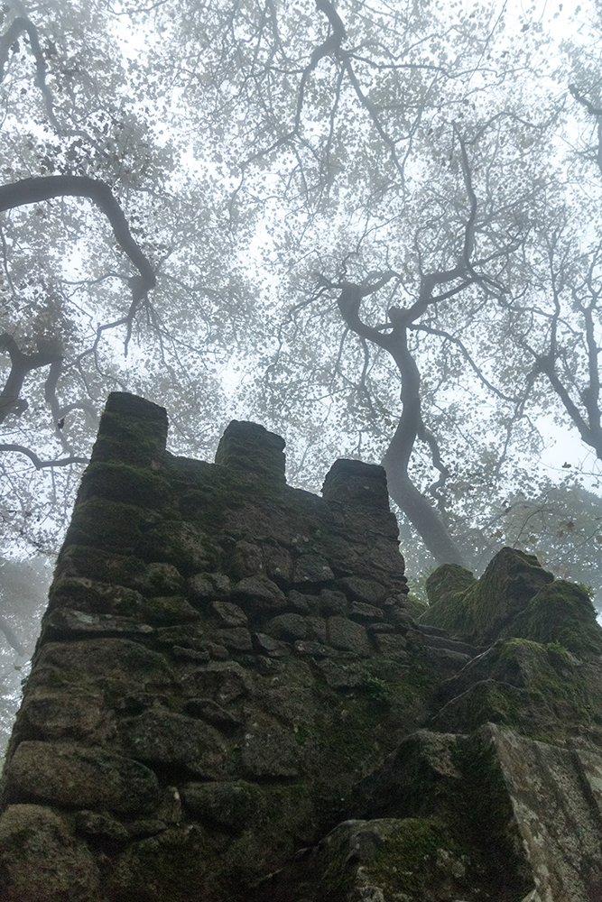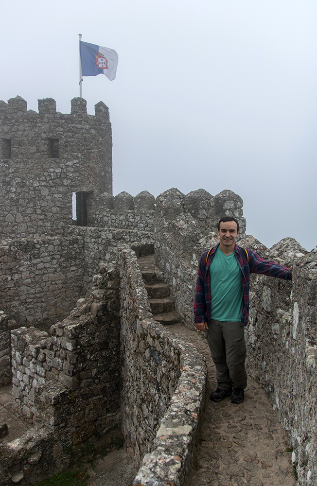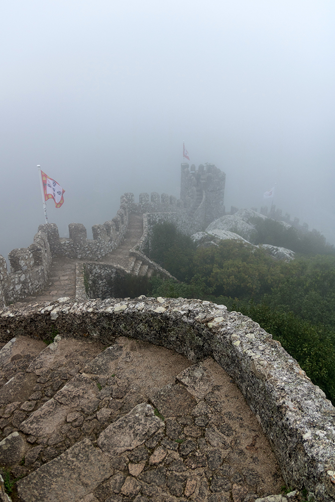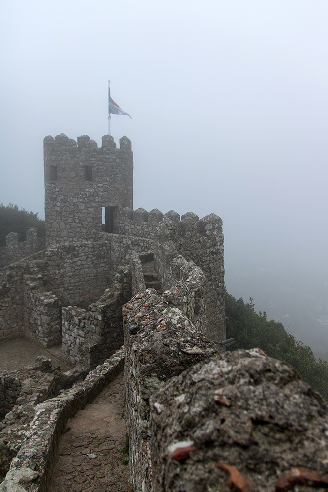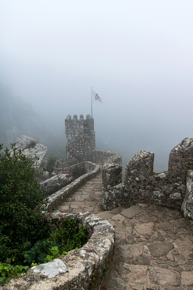 We raced back into town where we remembered seeing a bus stop, and caught a bus that dropped us off at the Castelo dos Mouros just in time to buy tickets. An uphill trail through a damp and misty forest led us up to the base of the castle, which has been standing since the 8th century when the Moors used it as a fortification. Unlike Pena Palace and Quinta da Regaleira, the castle was relatively empty of visitors. It was much quieter, save for a harsh wind that battered the hillside, and Vince and I both agreed that it was our favorite stop of the day.