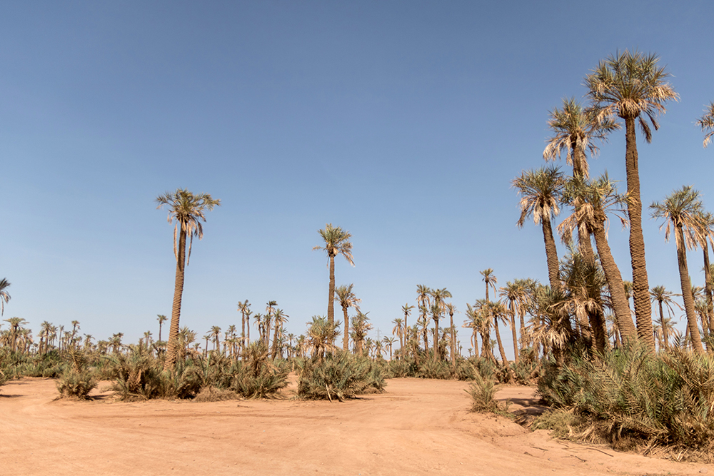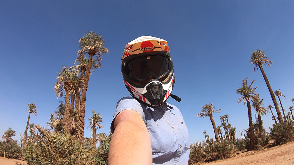 Eventually we took a break in a palm oasis that had materialized seemingly out of nowhere from the sandy desert. Our guide handed out bottles of water, which was much appreciated, and I did my best to wipe most of the dust off of my mouth before taking a drink. Now that we’d stopped I noticed that I was sweaty and coated in dust from head to toe, but I was having a blast.