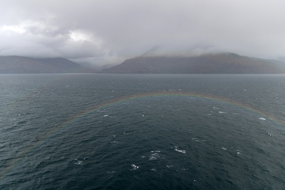 Mountains and glaciers were ever-present companions, rainbows arched over the water, and whale spouts broke the surface in the distance. We even sailed along Cape Froward, which is the southernmost point on the South American mainland.