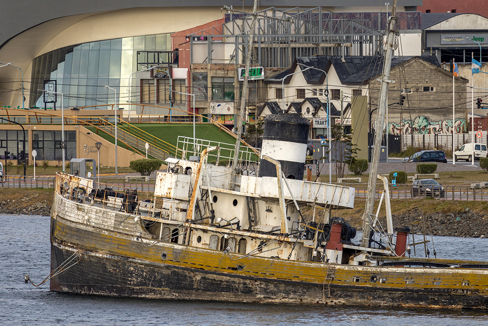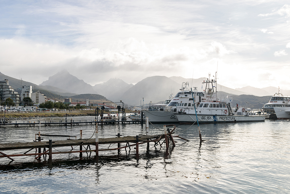 It seemed that most other passengers didn’t have the same idea. Deck eight was empty when I went outside to meet up with Vince, who had gotten up even earlier than I did. We shared a first view of the town of Ushuaia which was nestled into a backdrop of picturesque mountain scenery.
