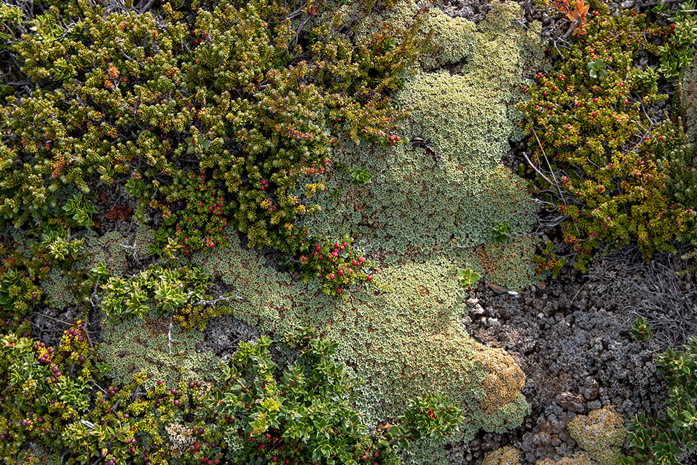 Here we got about twenty minutes to walk along an easy trail that cut through a meadow that was blanketed in a variety of lichens, mosses, and brushy grasses. At the end of the trail was a, outstanding viewpoint overlooking mountains fading into the distance as far as the eye could see.