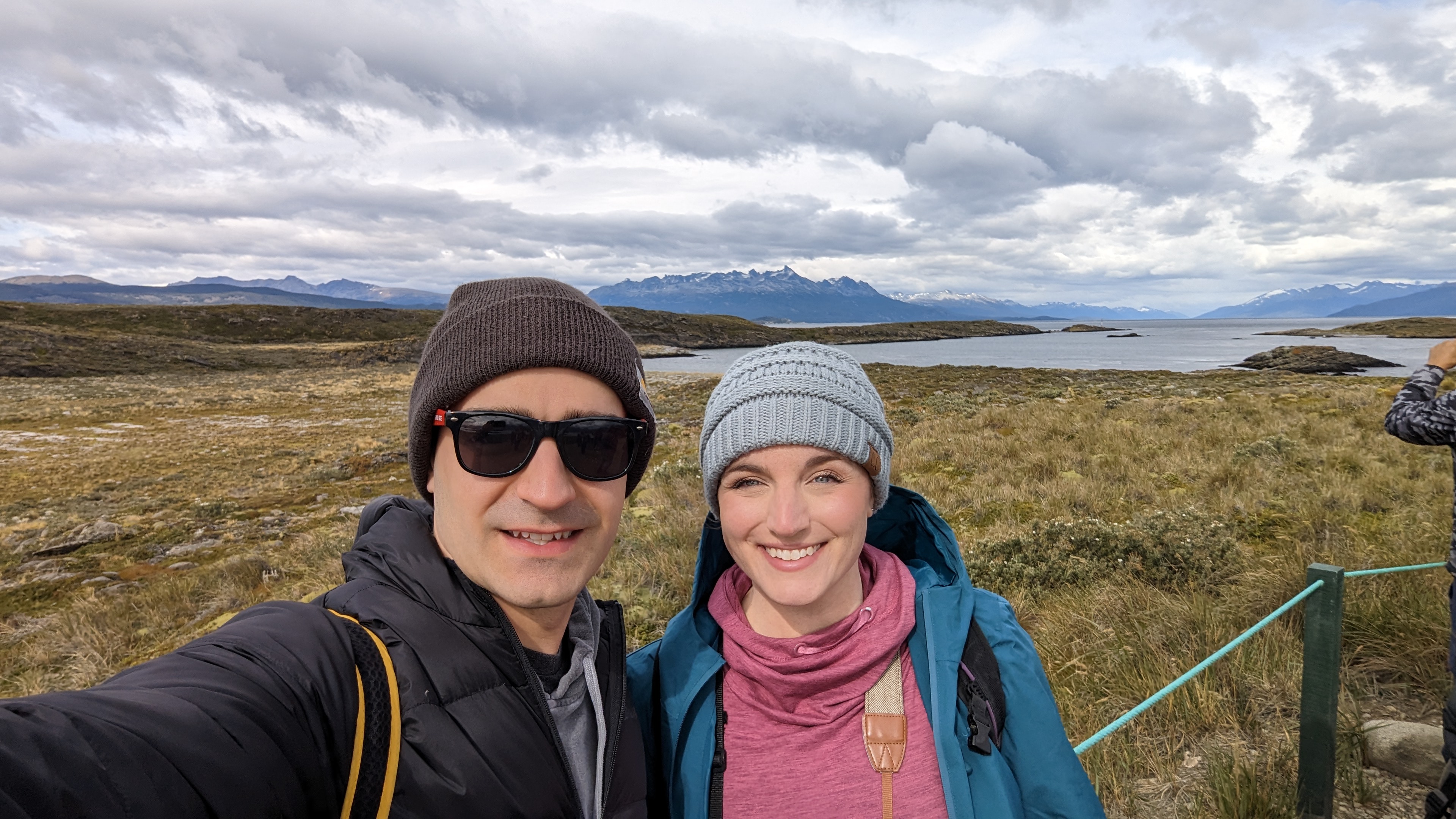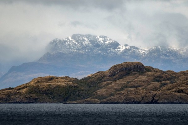 We were sailing through the Strait of Magellan, a waterway that separates the South American mainland from Tierra del Fuego. This was the day that our original itinerary would have had us in port in Punta Arenas if it weren’t for all of the drama at the beginning of our cruise. Vince and I had planned on hiking along a beach in the Strait of Magellan, so I was happy to get to see the beautiful landscape after all, even though we couldn’t stop.