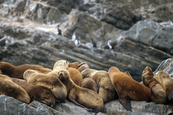 Upon a closer inspection of the island’s many inhabitants, I began to find other animals. Sea lions, and other types of shorebird mingled among the cormorants.