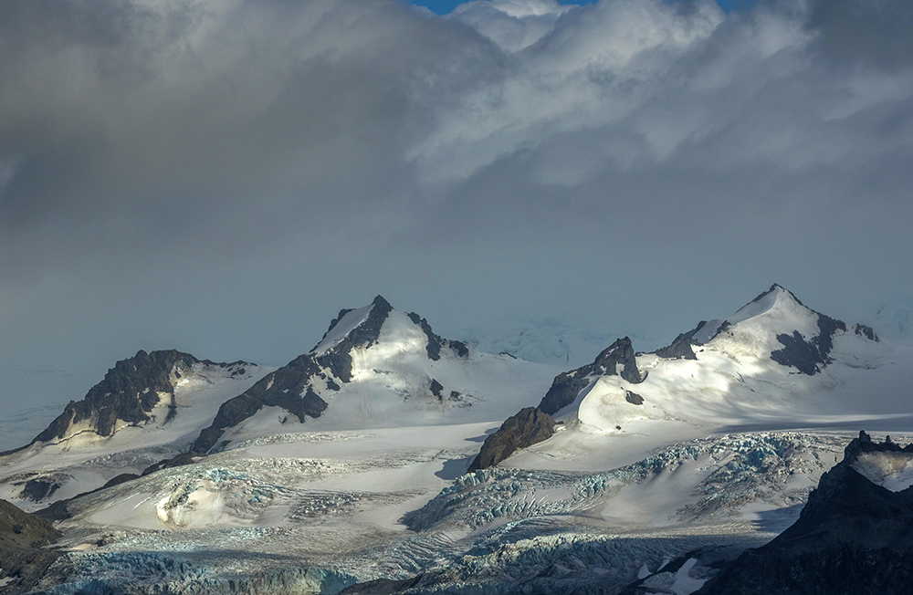 As we neared the island though, my attention was torn from the wildlife to focus instead on the landscape, a rarity for me since I’m known to typically abandon all other thoughts when there is wildlife around. In this case however, the commanding mountains glistening with ice begged for my appreciation. The way the sun illuminated the blue glaciers was nothing short of magnificent.
