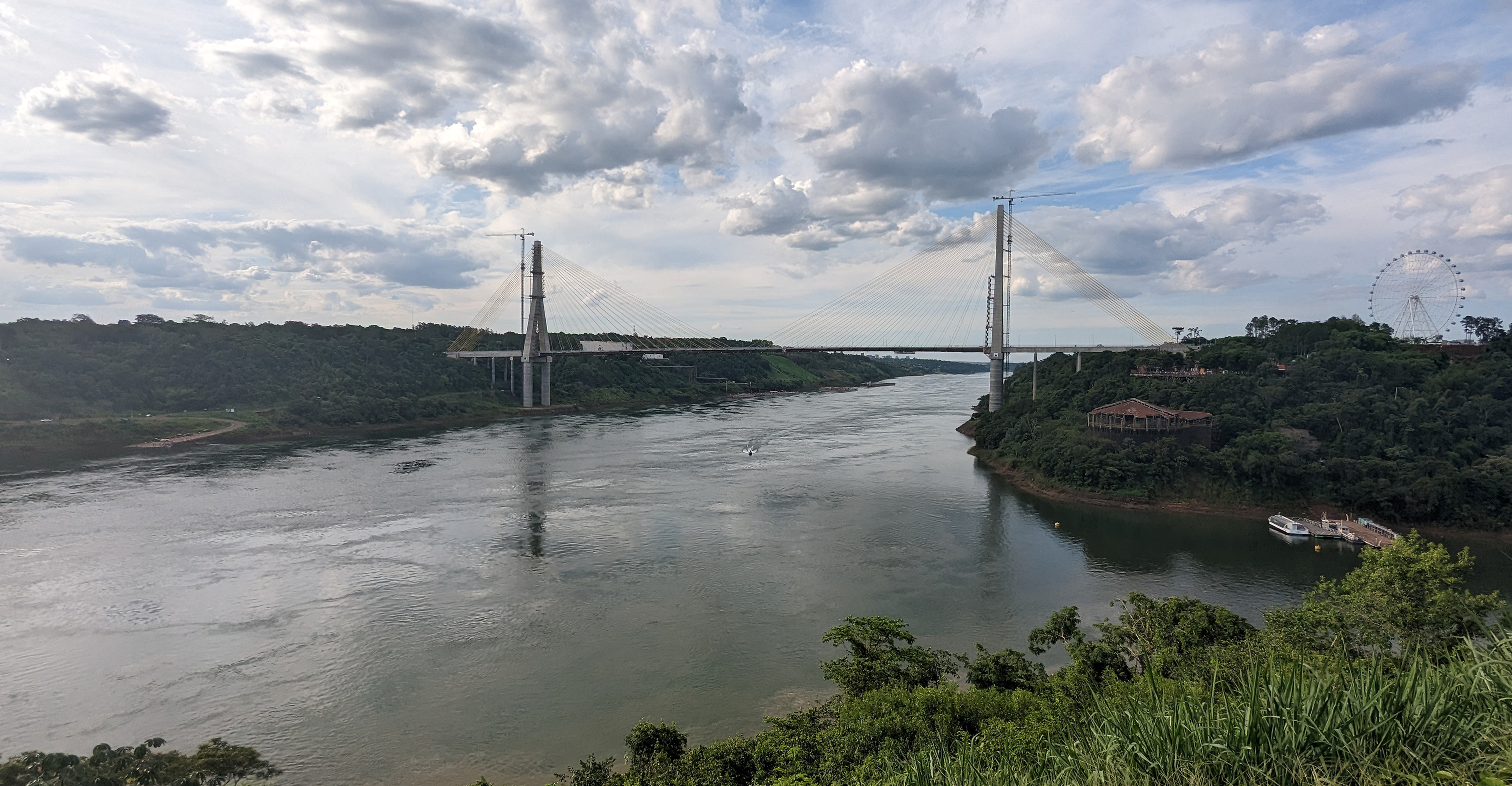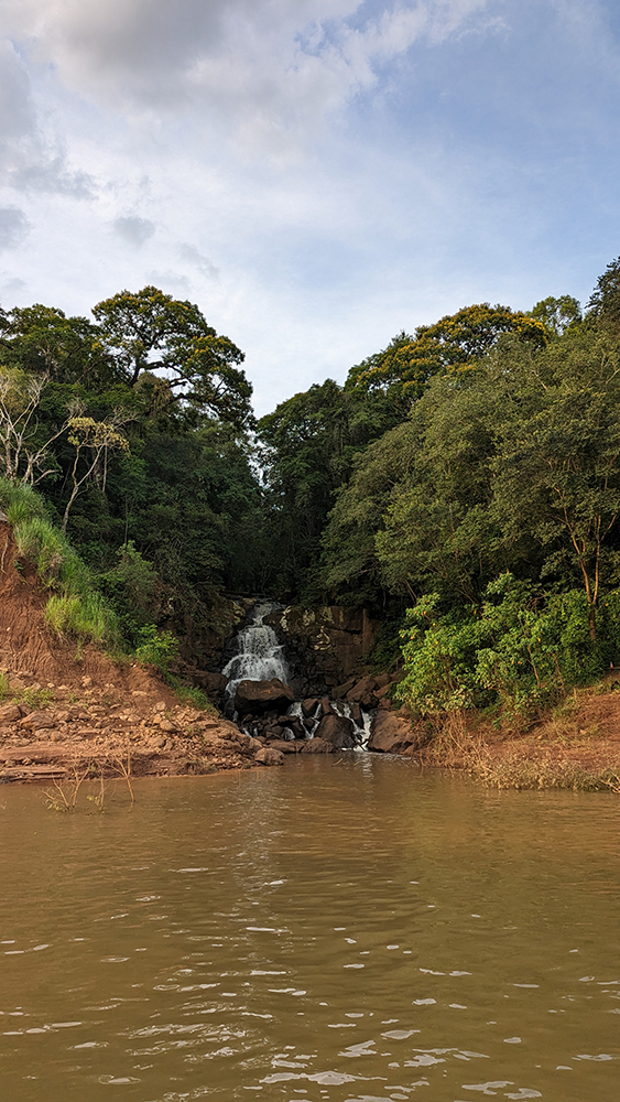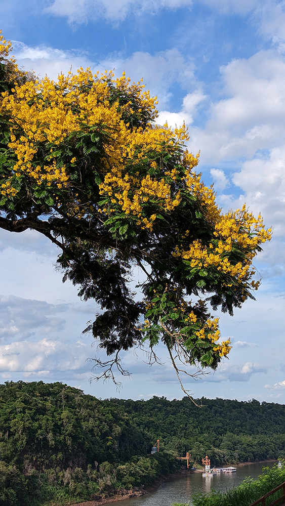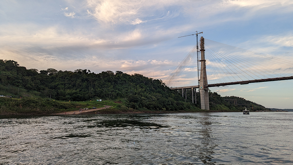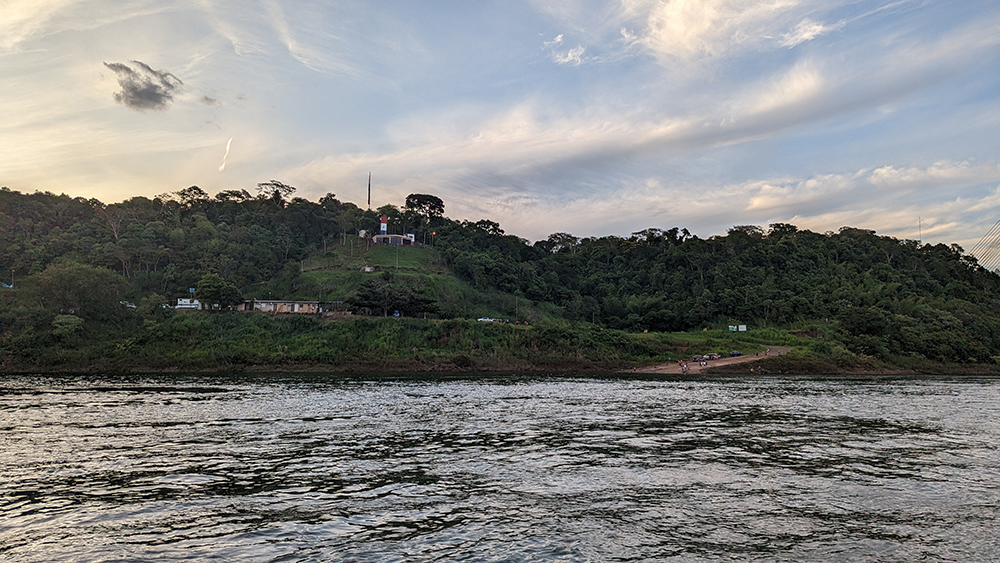 So we walked for a few miles, through the town of Puerto Iguazú, and down a steep hill to the bank of the Iguazú River, its water separating us from the Brazilian rainforest on the other side. We walked alongside the river, making a quick stop to book a sunset boat ride before continuing on until the sidewalk dead-ended in a viewpoint at the confluence of the Iguazú and Paraná Rivers. We were in Argentina, overlooking a view of Brazil across the Iguazú, and Paraguay across the Paraná from where we stood.