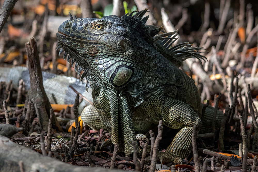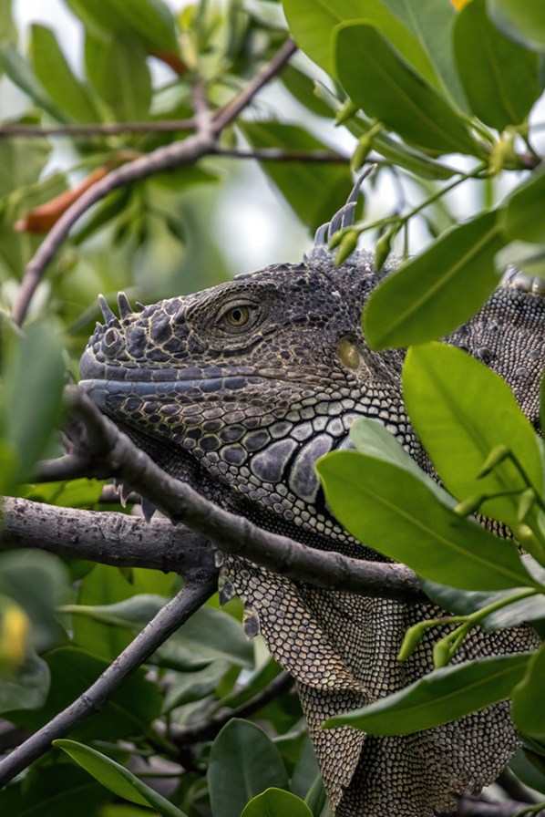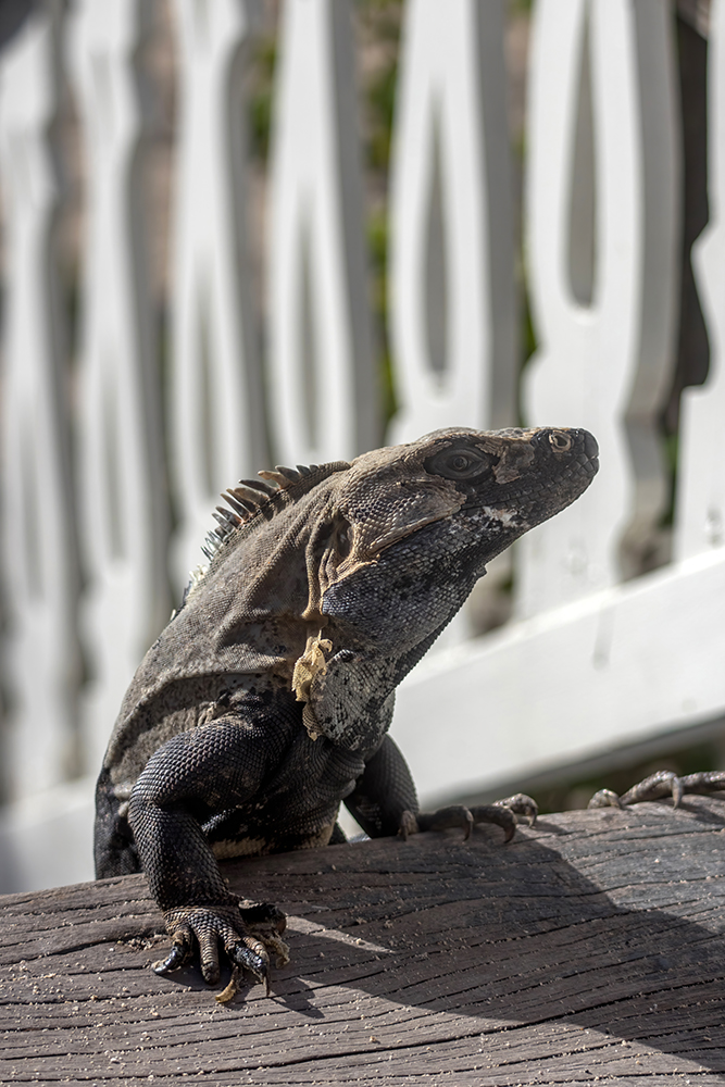 I was so glad we’d listened to Calvin’s advice to try another visit. The green iguanas were beautiful to see up close where I could see the complex variation in the colors of their scales. The green iguana is native to Belize, and has been an important symbol as far back as the Mayans who incorporated them into their religious beliefs. Unfortunately these gorgeous lizards are locally threatened, so they are now protected under Belizean law. More than one person told us that their local nickname is “bamboo chicken” because apparently their meat is quite tasty, although it’s now illegal to hunt them.