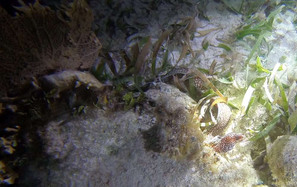 Of course while doing all of this learning, we were also keeping our eyes open for wildlife, and we got to have our first ever encounter with a nurse shark. The shark swam right up to Josh and performed a few acrobatic maneuvers around him, clearly accustomed to the sight of SCUBA divers.