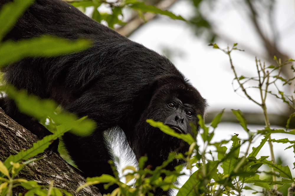 A young female came down to a branch that was just inches from our faces, and we got a great look at her before she leaped back up to the tree tops. Then we followed her through the jungle until we reached a clearing where a few more monkeys were hanging out. The male of the group was less than pleased to see us, and he made it known by belting out a powerful roar, while the rest of the family kept going about their business of eating fruit from the tree tops.