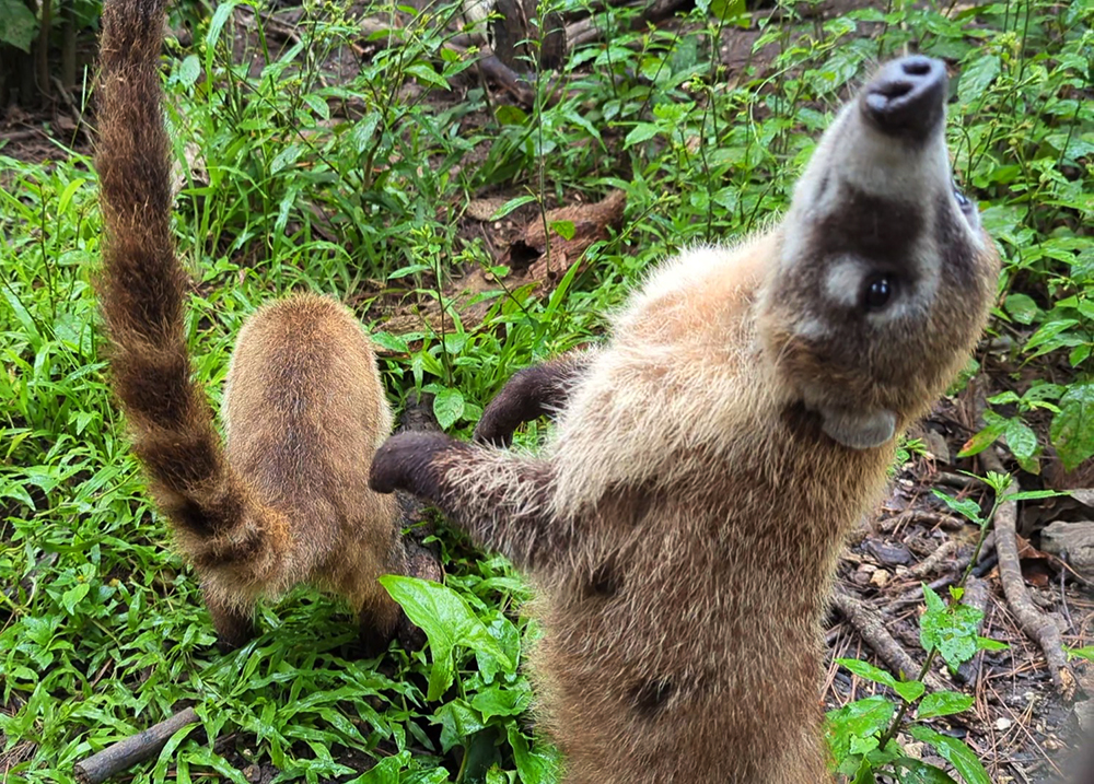 The animals didn’t seem to mind the rain any more than we did. In fact, they were all very active, and shockingly interested in us when we approached their enclosures. Coatis stood on hind legs to greet us, turtles swam up to the edge of their pond, and an otter seemed captivated by the bright yellow (the same color that the zookeepers wear) rain fly Bonnie had put over her backpack.