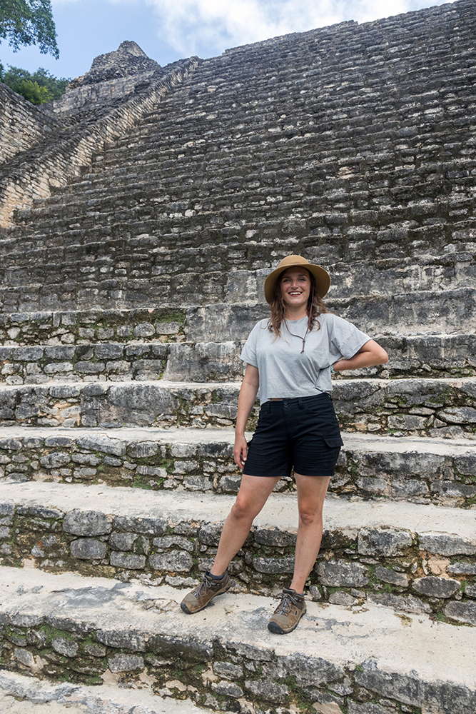 It took the the guys a long time to pry me and Bonnie away from this bird sighting, but they finally managed to coax us into continuing along the trail, and it wasn’t long before we stepped out from the cover of the rainforest and into the shadow of an utterly gargantuan pyramid. Once again I had the alluring feeling of an explorer stumbling upon a discovery. No sounds echoed through the air save for our own gasps of awe and the incessant humming of cicadas. We were the only human beings standing at the foot of what was (in my opinion) the most impressive ancient Mayan structure I’d ever seen.