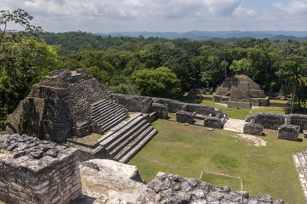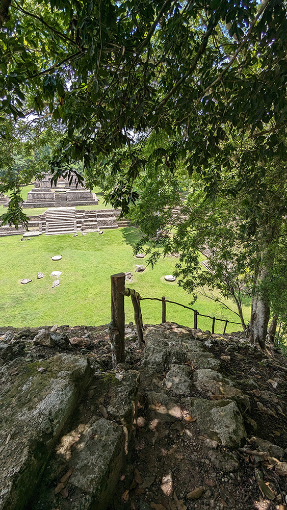 After what felt like an eternity of climbing, we finally stepped onto a grassy lawn atop the final tier of the pyramid. Caana contains four palaces and three temples, and three of those structures now stood in front of us, the final obstacle to the reach the summit.