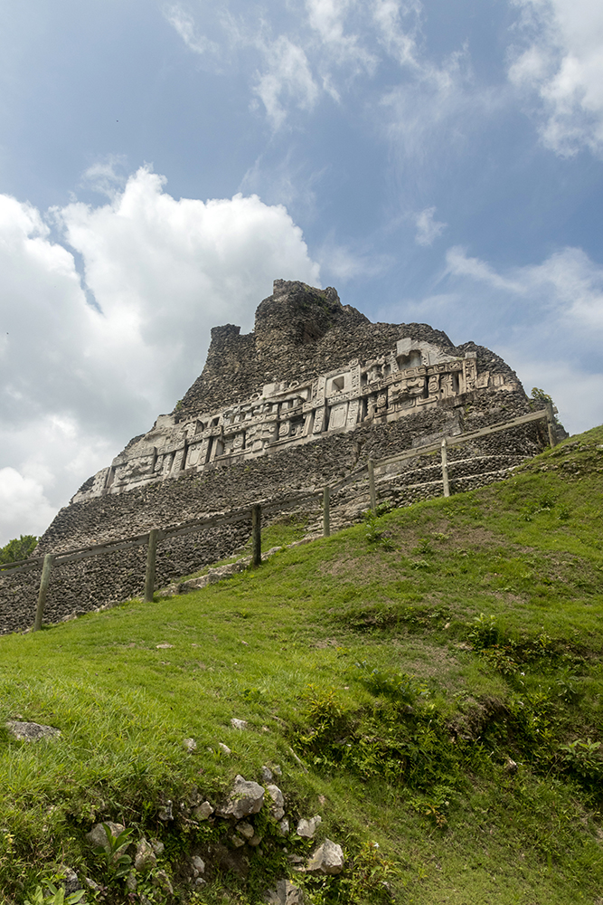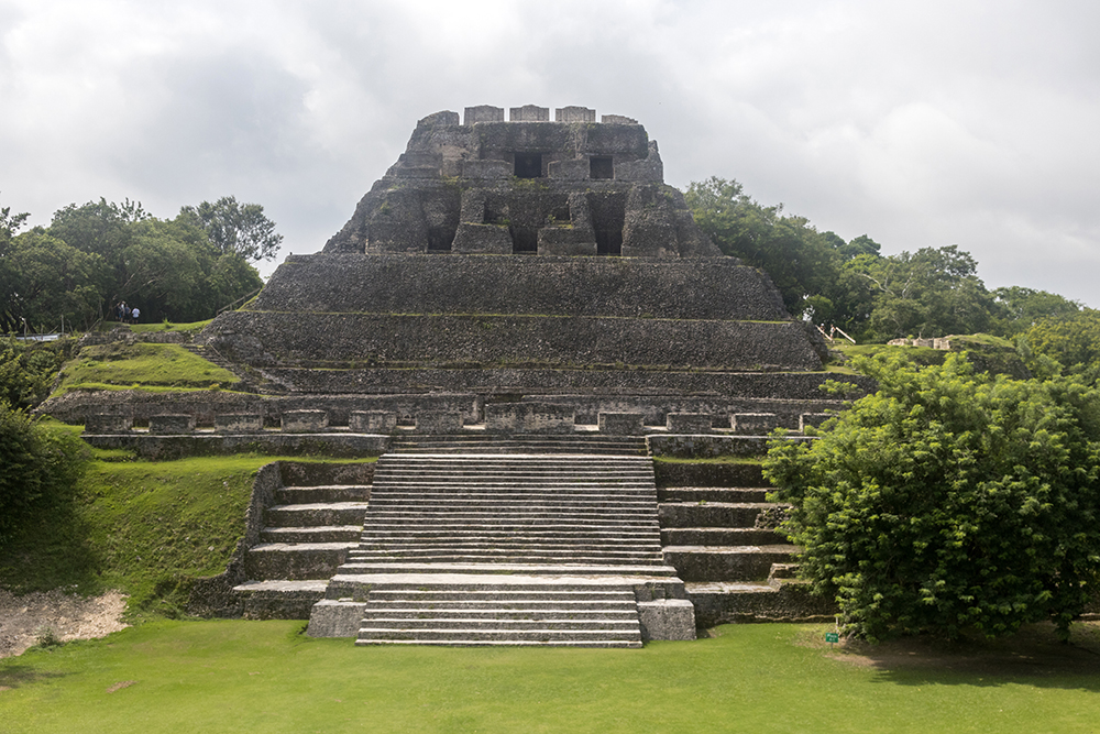 On the other side of the long field loomed El Castillo, the second tallest manmade structure in Belize, and the commanding focal point of Xunantunich. I let out a melodramatic groan when I realized how tall it was. Even a cloudy morning in Belize is hot-I could already feel sweat gathering on my forehead-and I dreaded the slog it would be to reach the top of El Castillo. Of course, that wouldn’t stop me from climbing it, not now that I knew how beautiful the view would be from up there.