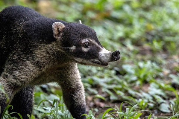 As luck would have it, there was a White-Nosed Coati snuffling around in a patch of grass right at the trailhead. The others had ducked away to use the restroom before we starting hiking, which left me with plenty of time to photograph him. This coati was a large male, and I dug my long lens out of my bag so I could give him a wide berth. Coatis look cute and cuddly, but I definitely didn’t want to get on the wrong side of his sharp claws or teeth.