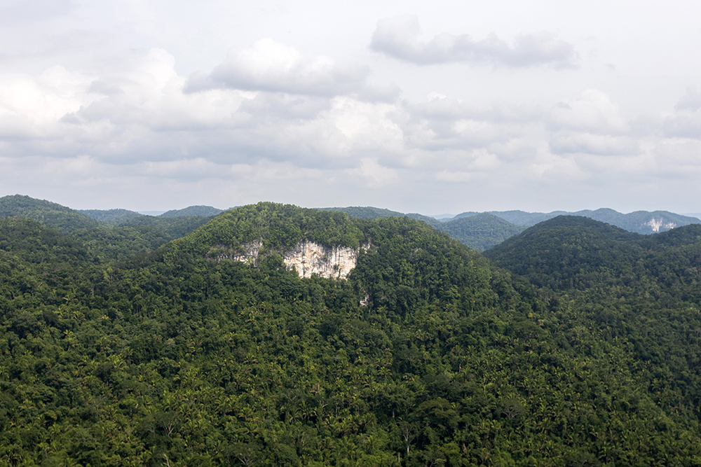 By the time everyone else was back from the bathroom, I had plenty of shots to choose from, and the coati was foraging his way further into the forest and out of sight. So with nothing left to distract us, we started trekking. The Black Rock Lodge Summit Trail would be a little over three miles from start to finish, and we’d be gaining about 1400 feet of elevation over the first half of the hike. We climbed slowly uphill, winding around switchbacks, and being careful not to slip on the muddy ground that was still wet from the previous night’s rain. By the fourth or fifth switchback, I was feeling nostalgic for the staircase on the side of El Castillo. It didn’t take long for sweat to soak my clothing, and the windless, humid air did nothing to wick it away. Soon I was as drenched as though I’d been swimming, an activity that was starting to sound much preferable to hiking.