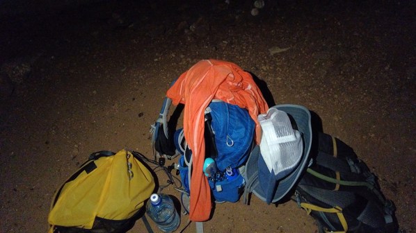 This meant that I was going to have to go in after them. Ducking under the short entrance, I crept into the cave where I found my first clue. A pile of day packs sat neatly in the center of the first room. Behind the gear was total darkness. I didn’t have a good flashlight on me, so I pulled my phone out of my pocket and turned on its weak flashlight setting to get a better look at my surroundings. The dim light revealed a low tunnel at the back of the room. It had to be where they’d gone. No voices emanated from beyond the tube, so I felt that I had to crawl through to investigate.
